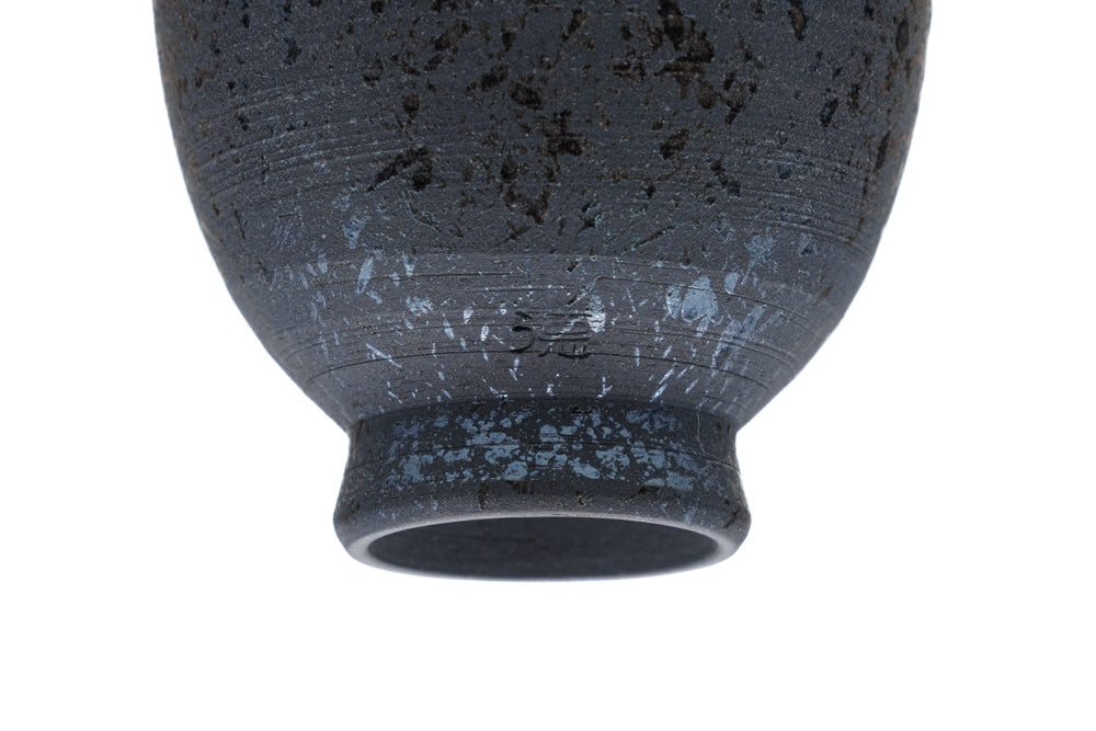 This unique Tokoname-yaki yunomi (teacup) is made from a black clay splattered with an ash glaze in a style called haikake (»Ғì). The interior is partially glazed with white so that the colour of the tea can be appreciated.