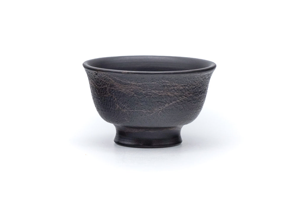 This expertly crafted senchawan (sencha cup) has a classic tulip shape and a tall, flared foot. It is made from Tokoname kokudei (ü\Äà) clay, which has the same properties as the iconic red shades (ÖìÄà) but is fired in reduction producing a deep black.