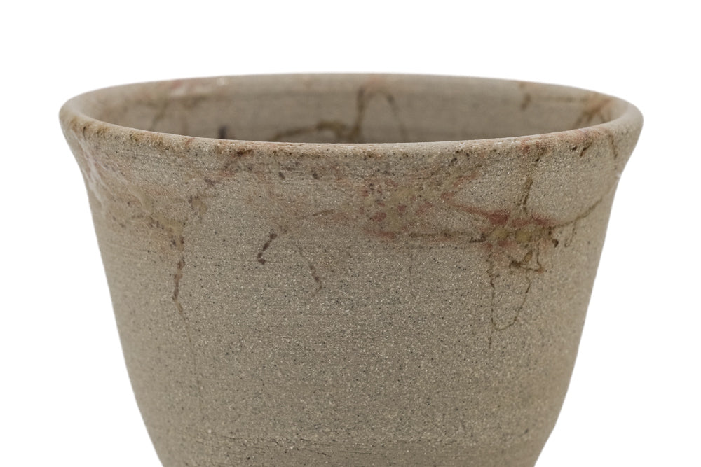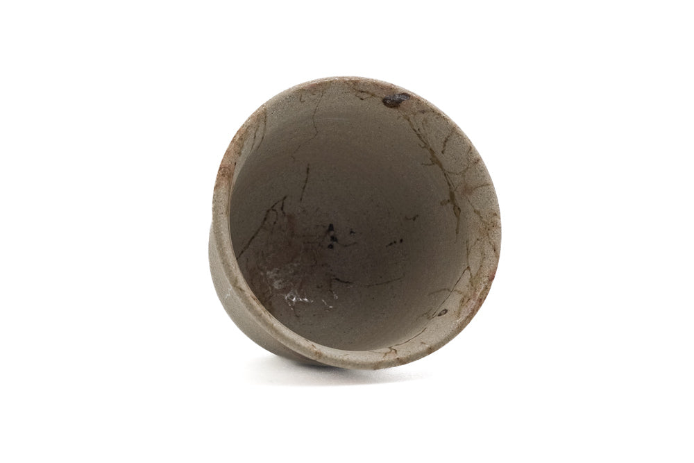 This elegant Tokoname-yaki senchawan (sencha cup) is made with yakishime (Ÿ†¾†/Ÿ†©e) clay and is fired in the tanka (̿»¯ - carbonisation) style. On top of this, the cup is decorated with an intricate web of fine mogake (Ôå’ì - seaweed wrapping) patterns. As the name suggests, this traditional Tokoname technique that dates back to the Edo period is achieved by wrapping each piece with amamo seaweed before firing. In the kiln, the seaweed burns off, leaving its carbonised silhouette draped across the piece. With a classic tulip shape and a modest 40ml capacity, this cup is ideal for savouring high-grade sencha, though can be used for any purpose.
